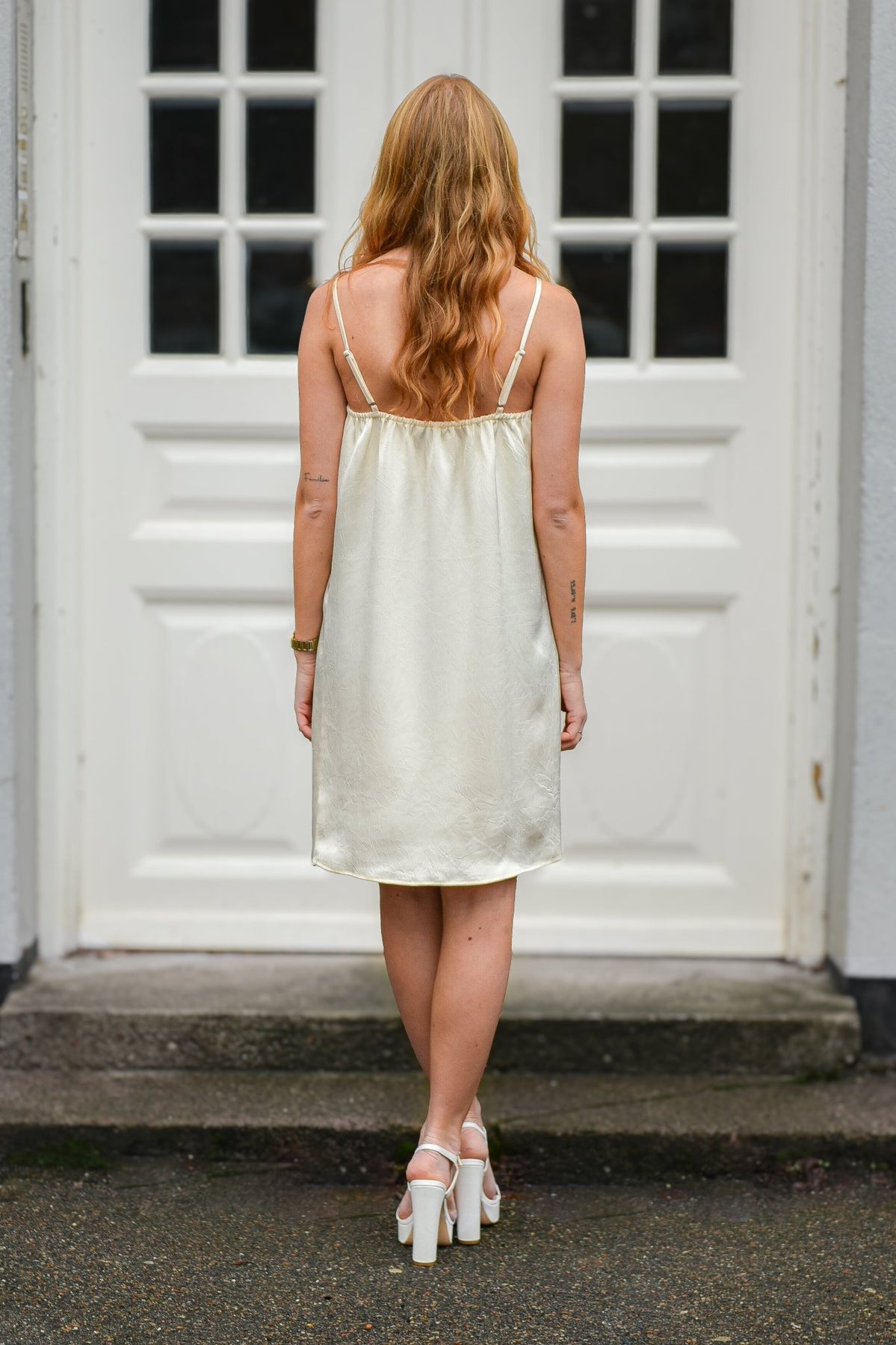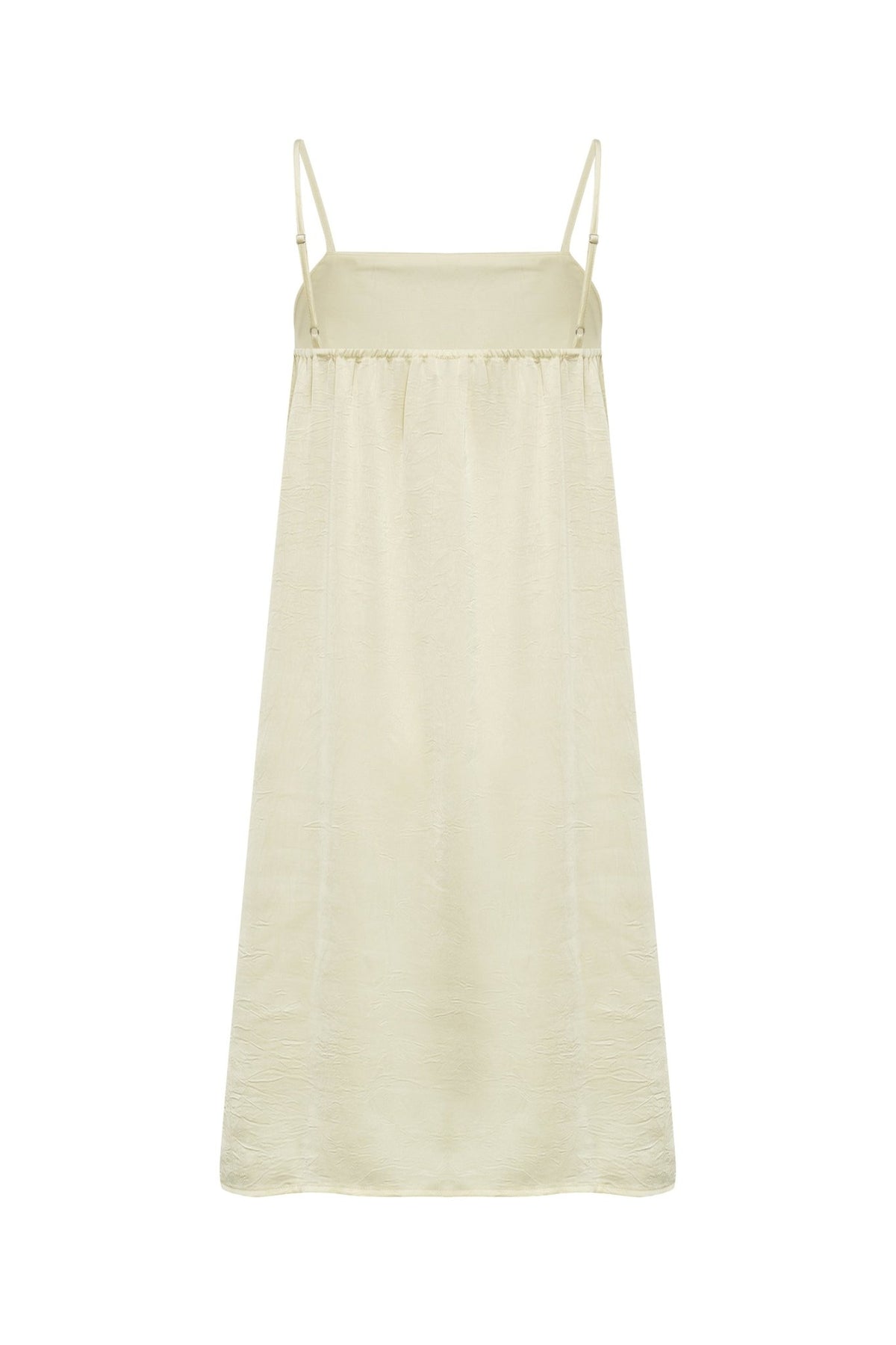 Kevyt ja elegantti olkaimellinen mekko, joka huokuu ajattoman naisellista tyyliä. Minipituinen malli laskeutuu kauniisti ja tuntuu miellyttävältä päällä. Säädettävät olkaimet takaavat istuvuuden, ja yksinkertainen siluetti tekee mekosta helposti yhdisteltävän niin arkeen kuin juhlavampiinkin hetkiin.