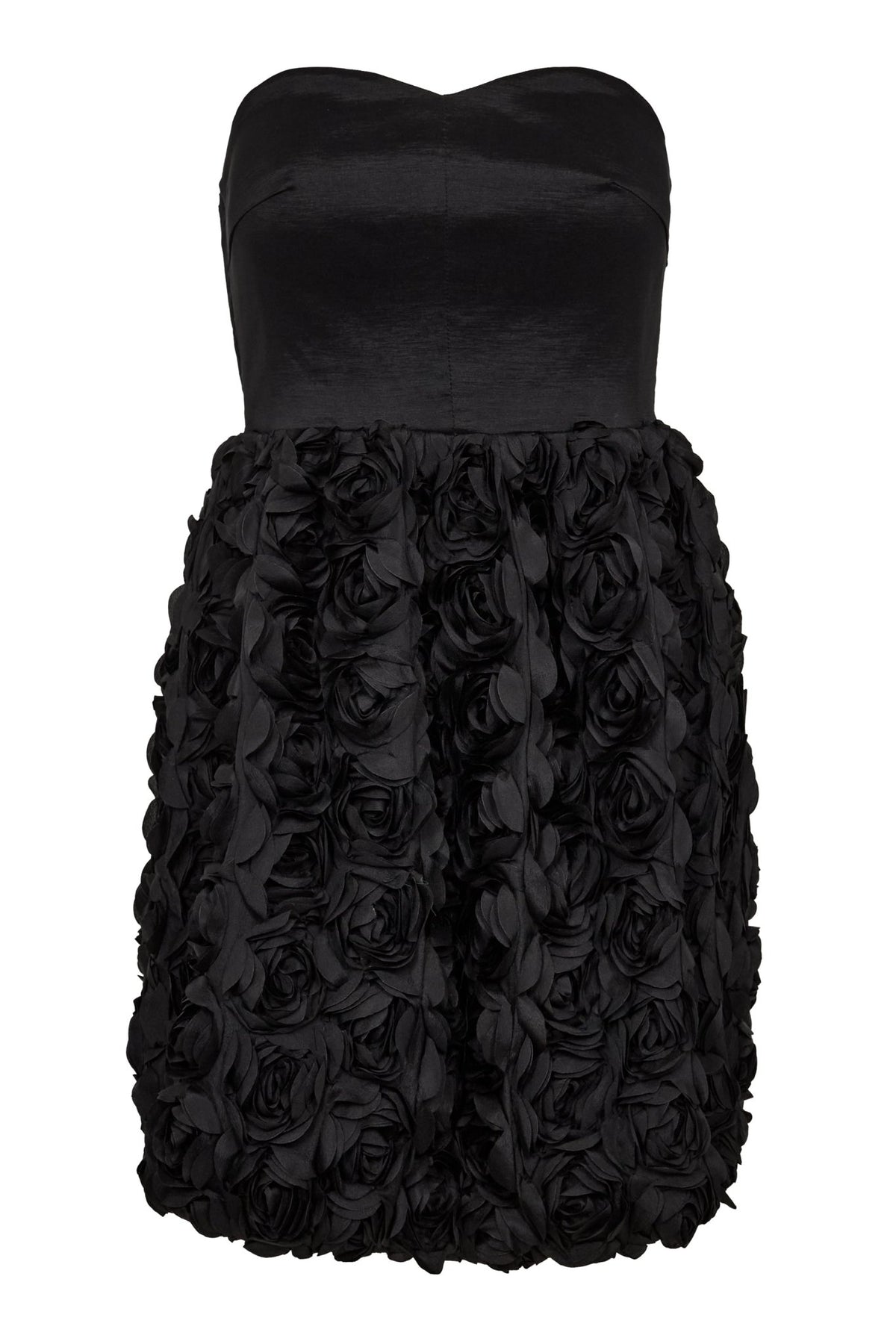 Rosie-mekko on näyttävä, olkaimeton minimekko, joka hurmaa ylellisellä kolmiulotteisella kukkatekstuurillaan. Yläosa on napakasti istuva ja korostaa kauniisti vartaloa, kun taas runsashelmainen alaosa tuo asuun juhlavan siluetin.