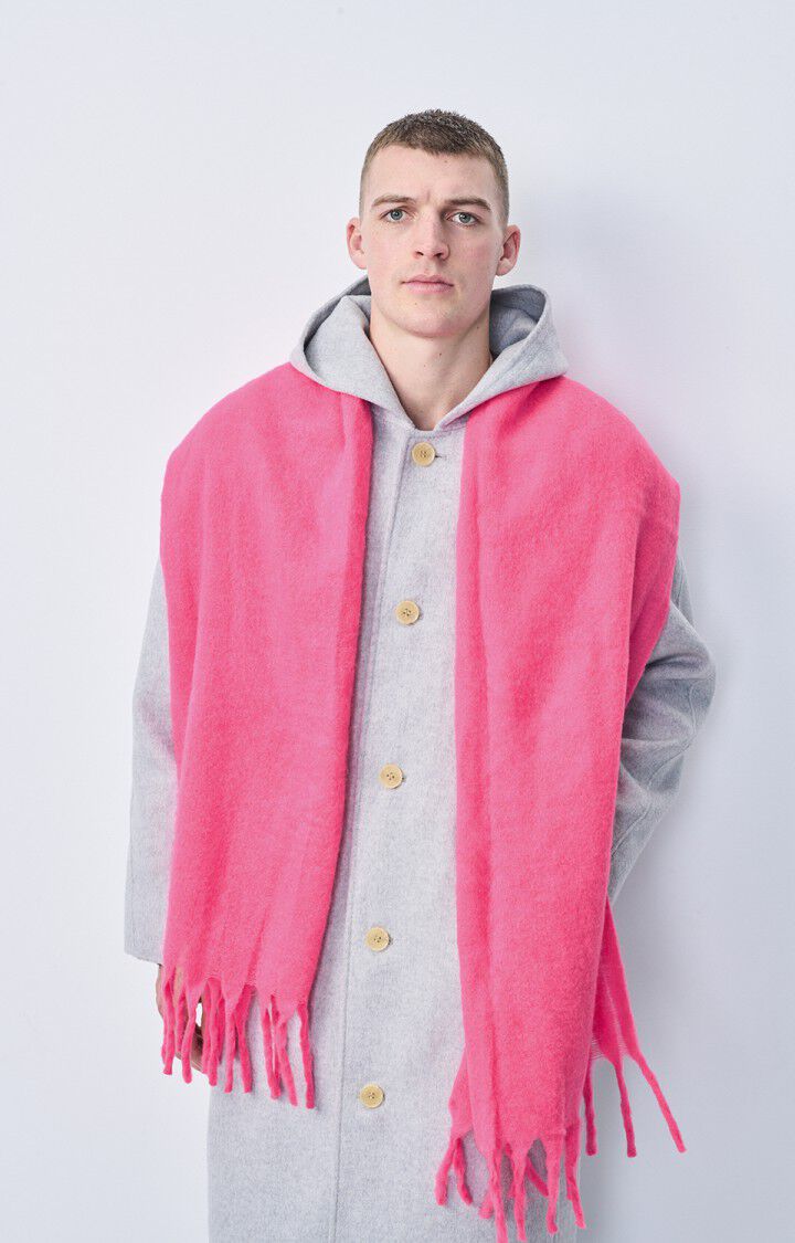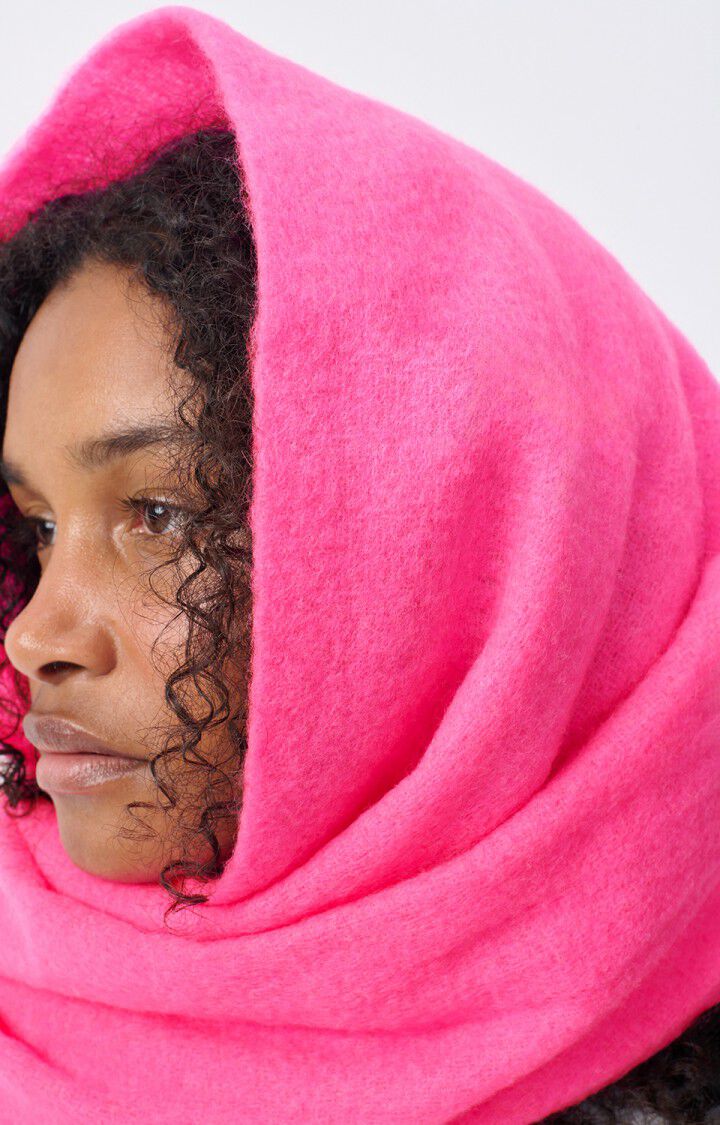 Pitkä, pehmeä huivi, jossa on paksu neulos ja hapsutetut päät. Lämmin ja näyttävä asuste, joka tuo väriä ja volyymia talvipukeutumiseen. Täydellinen lisä minimalistisiin takkeihin tai rentoon kerrospukeutumiseen.