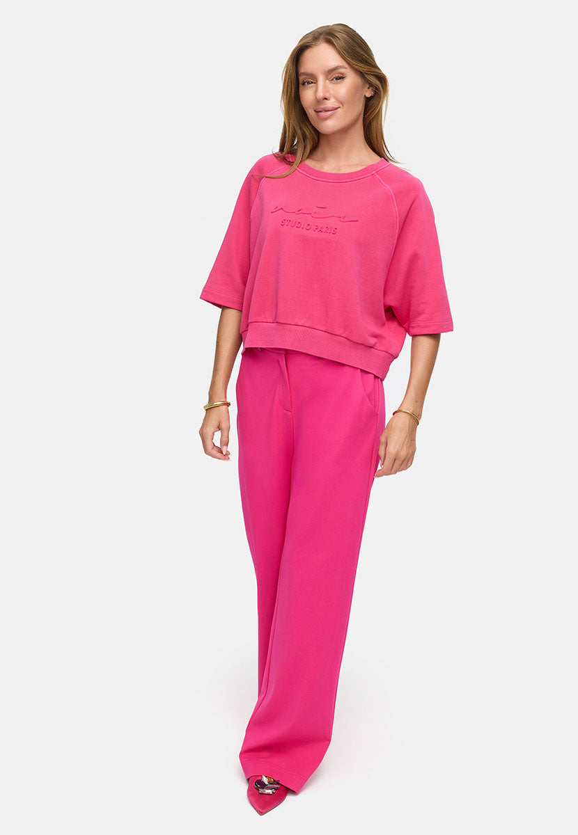 Lyhyet raglanhihat ja klassinen pyöreä pääntie tuovat sporttista ilmettä, ja hillitty kohokuvioitu logo viimeistelee modernin lookin. Yhdistä saman sävyisiin housuihin tai stailaa farkkujen kanssa.