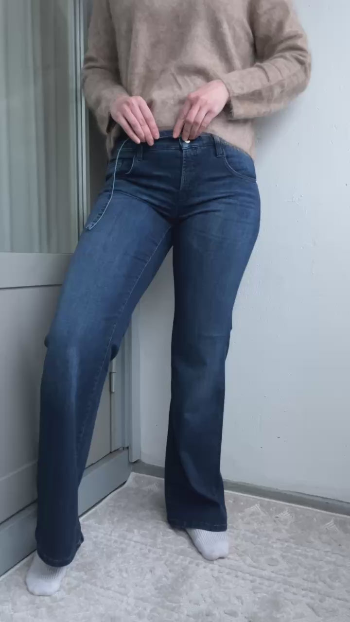 Tess on tyylikäs leveälahkeinen farkkumalli, joka tuo modernin ilmeen arkipukeutumiseen. Näissä mid ink -sävyisissä farkuissa on keskikorkea vyötärö ja viistot etutaskut, jotka viimeistelevät farkkujen huolitellun siluetin. Pehmeä ja joustava denim-materiaali tekee housuista miellyttävän tuntuiset päällä myös viileämpinä päivinä.