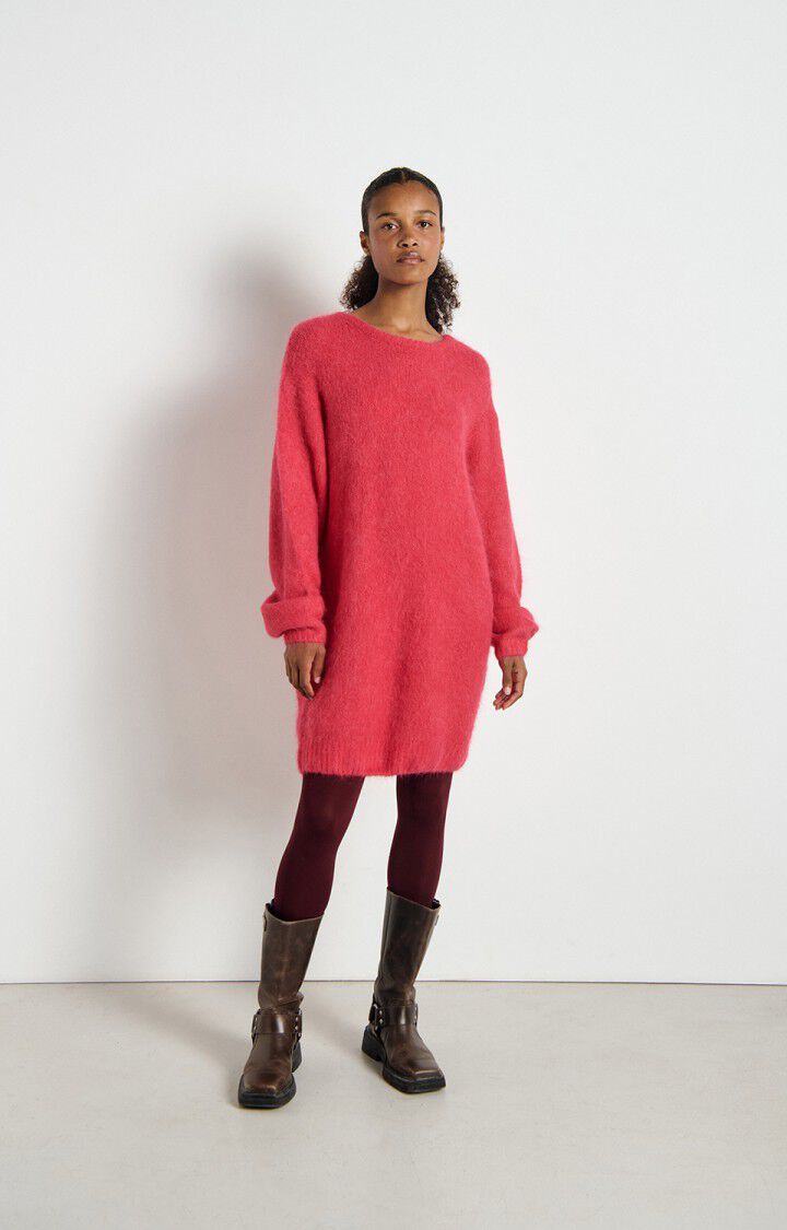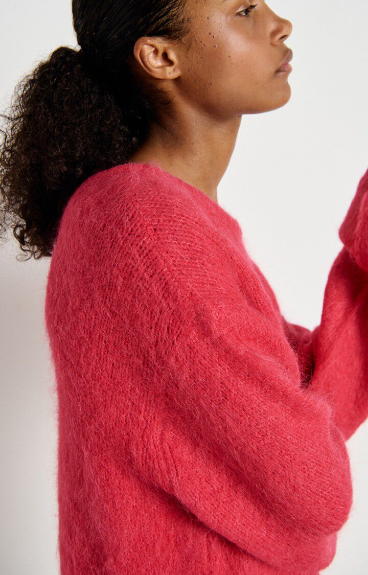 Tämä pörröinen neulepusero tuo pehmeyttä ja lämpöä viileisiin päiviin. Suora malli ja pyöreä pääntie tekevät siitä helposti yhdisteltävän niin farkkujen, hameiden kuin rentojen housujenkin kanssa. Pinnaltaan nukkapintainen neulos tuo tekstuuria ja näyttävyyttä, samalla kun joustava materiaali takaa mukavan istuvuuden. Malli on 175cm pitkä ja käyttää kokoa XS-S.