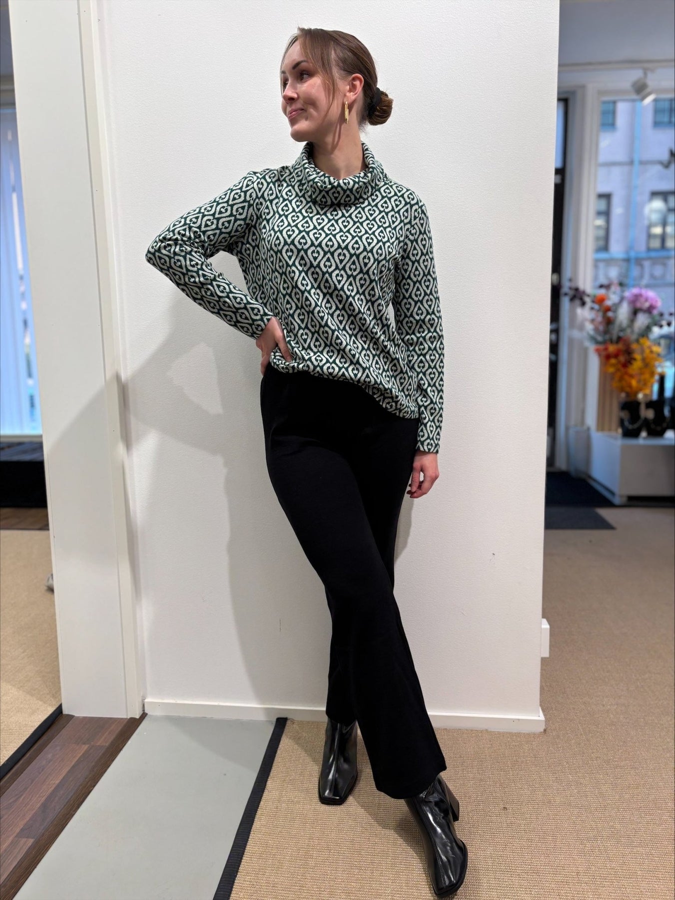 Korkeavyötäröinen malli, joustava vyötärö ja kevyesti levenevä lahje viimeistelevät rennon mutta huolitellun ilmeen. Täydellinen pari yhteensopivalle merinovillaneuleelle.