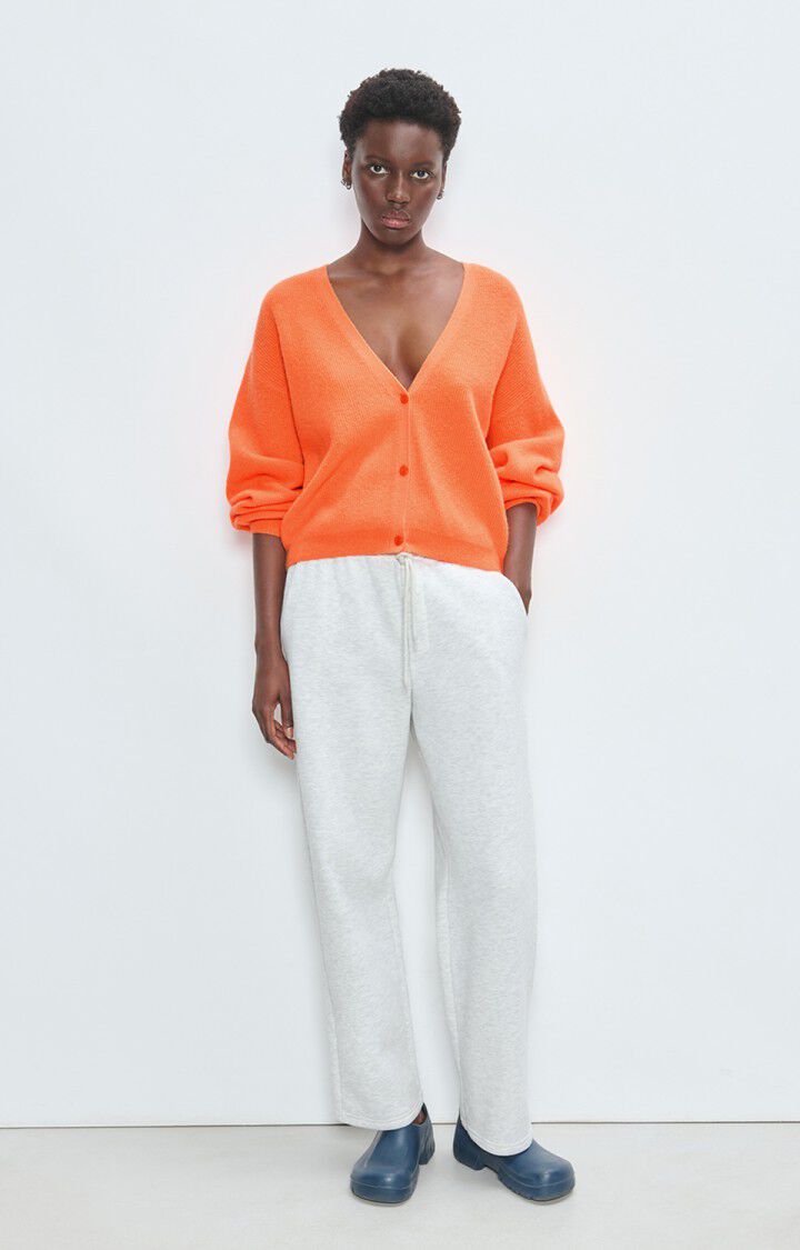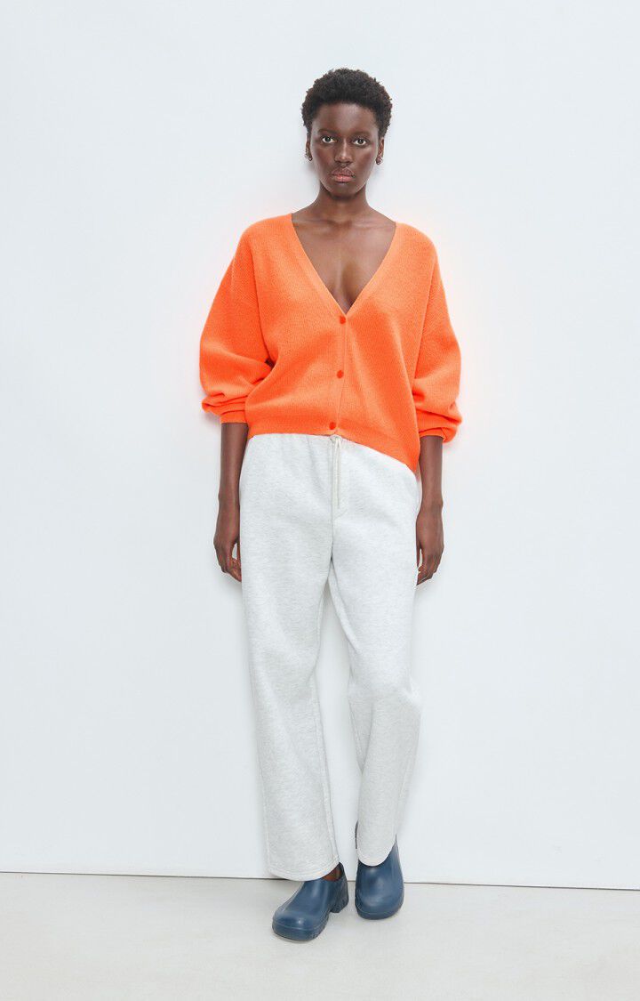 Pehmeä ja lämmin neuletakki kirkkaassa oranssissa sävyssä. Väljä ja rennon naisellinen malli, jossa syvä V-kaula-aukko ja kolme sävyyn sointuvaa nappia edessä. Pudotetut olkapäät ja täyspitkät hihat tuovat rennon mutta huolitellun ilmeen. Neulos on miellyttävän kevyt, mutta lämmittävä. Täydellinen valinta viileämpiin päiviin tai kerrospukeutumiseen.