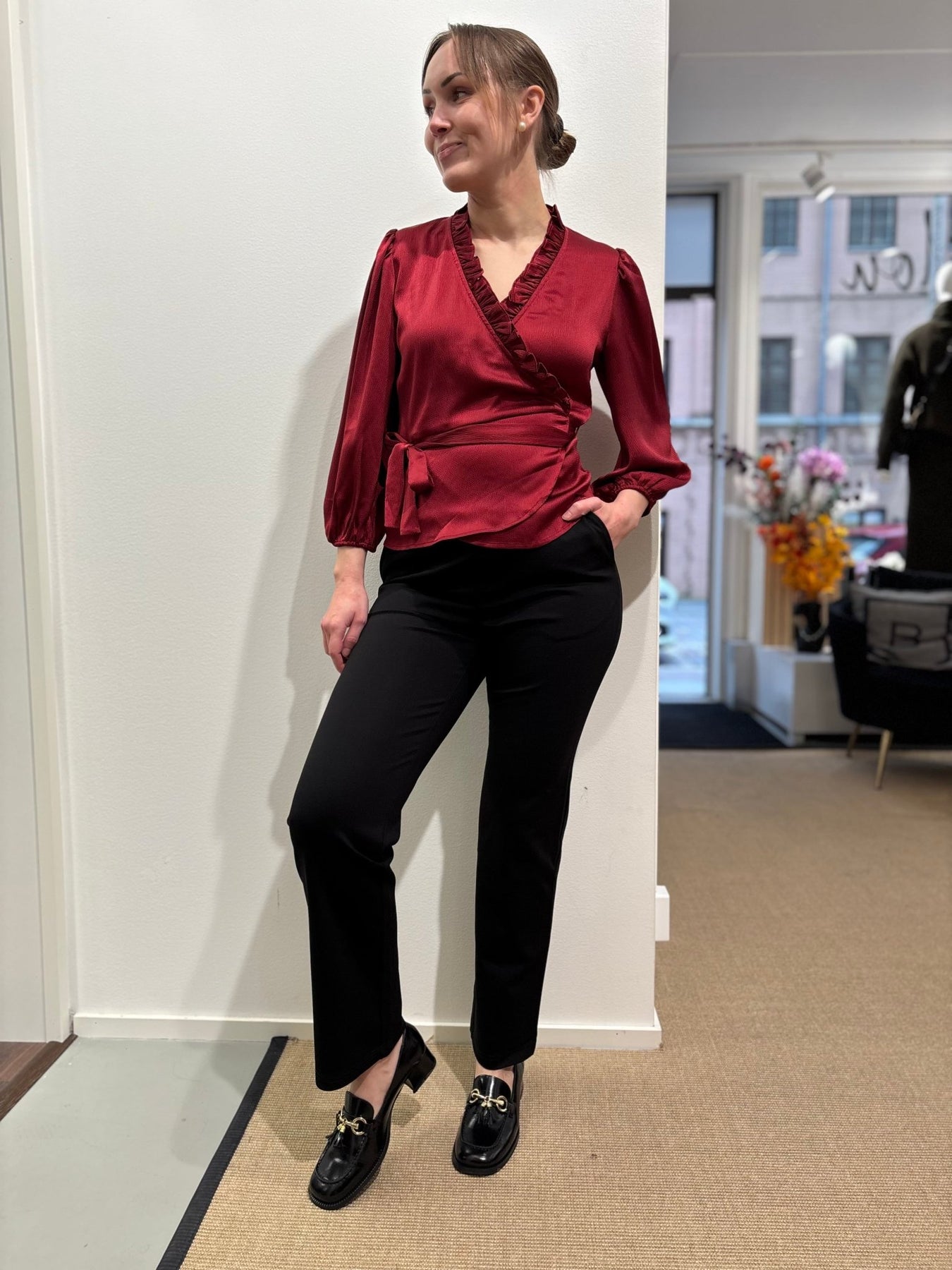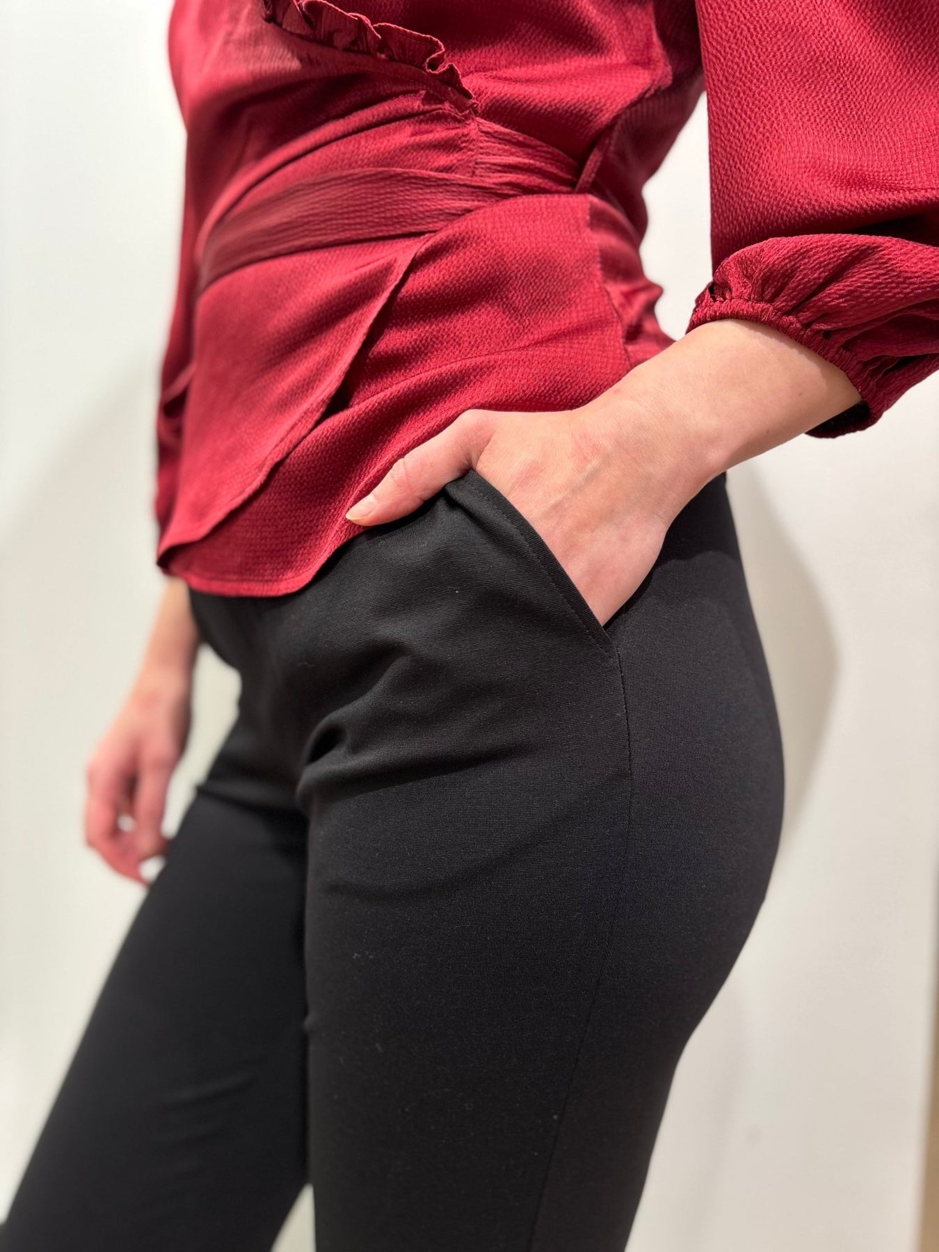 Tyylikäs ja monikäyttöinen pitkä housu suoralla lahkeella. Housussa on siisti ja napakka istuvuus, joka tekee siitä täydellisen niin työpäiviin kuin rennompiin tilaisuuksiin. Klassinen musta sävy tekee housuista helpon yhdistää erilaisiin yläosiin.