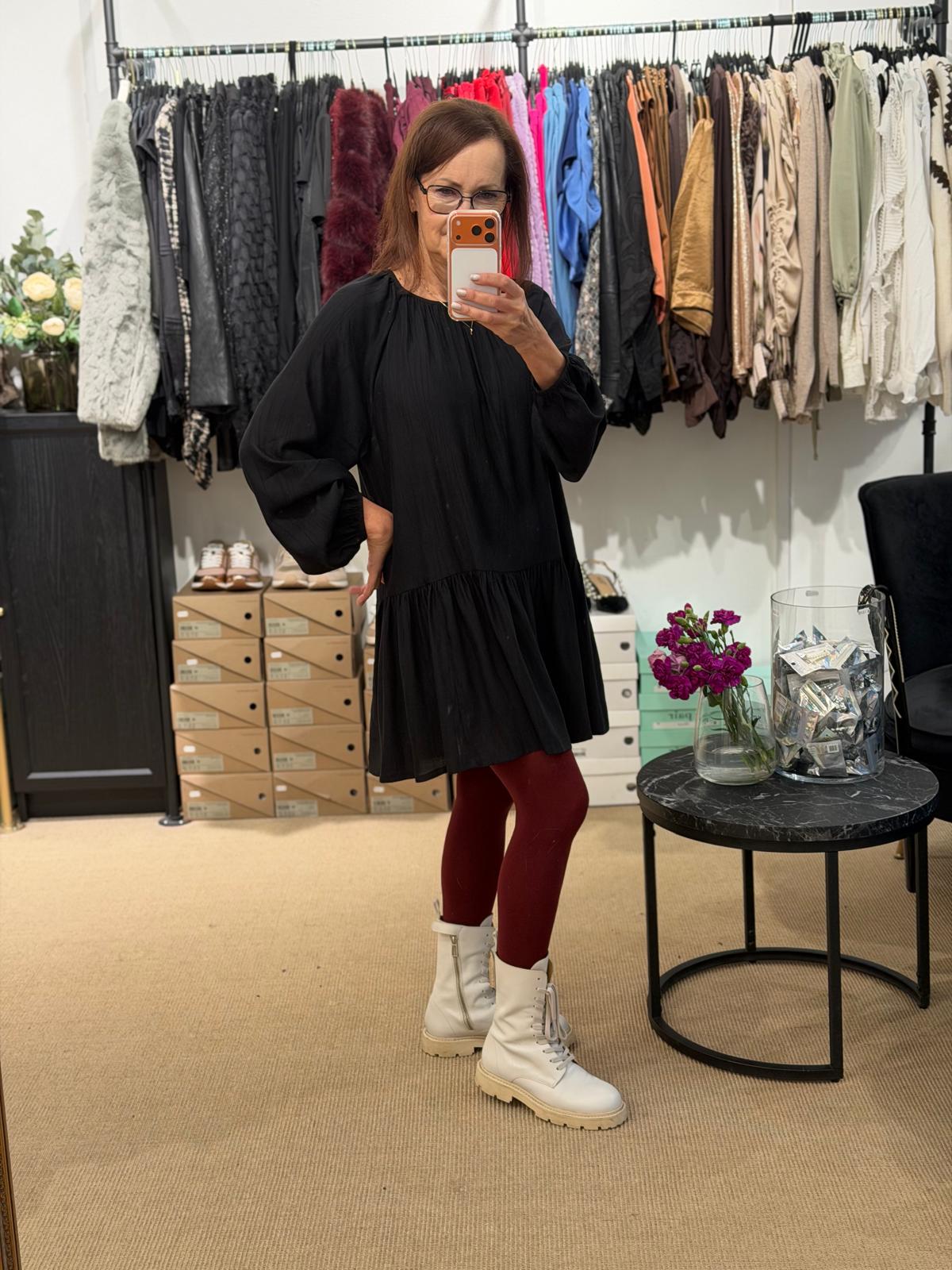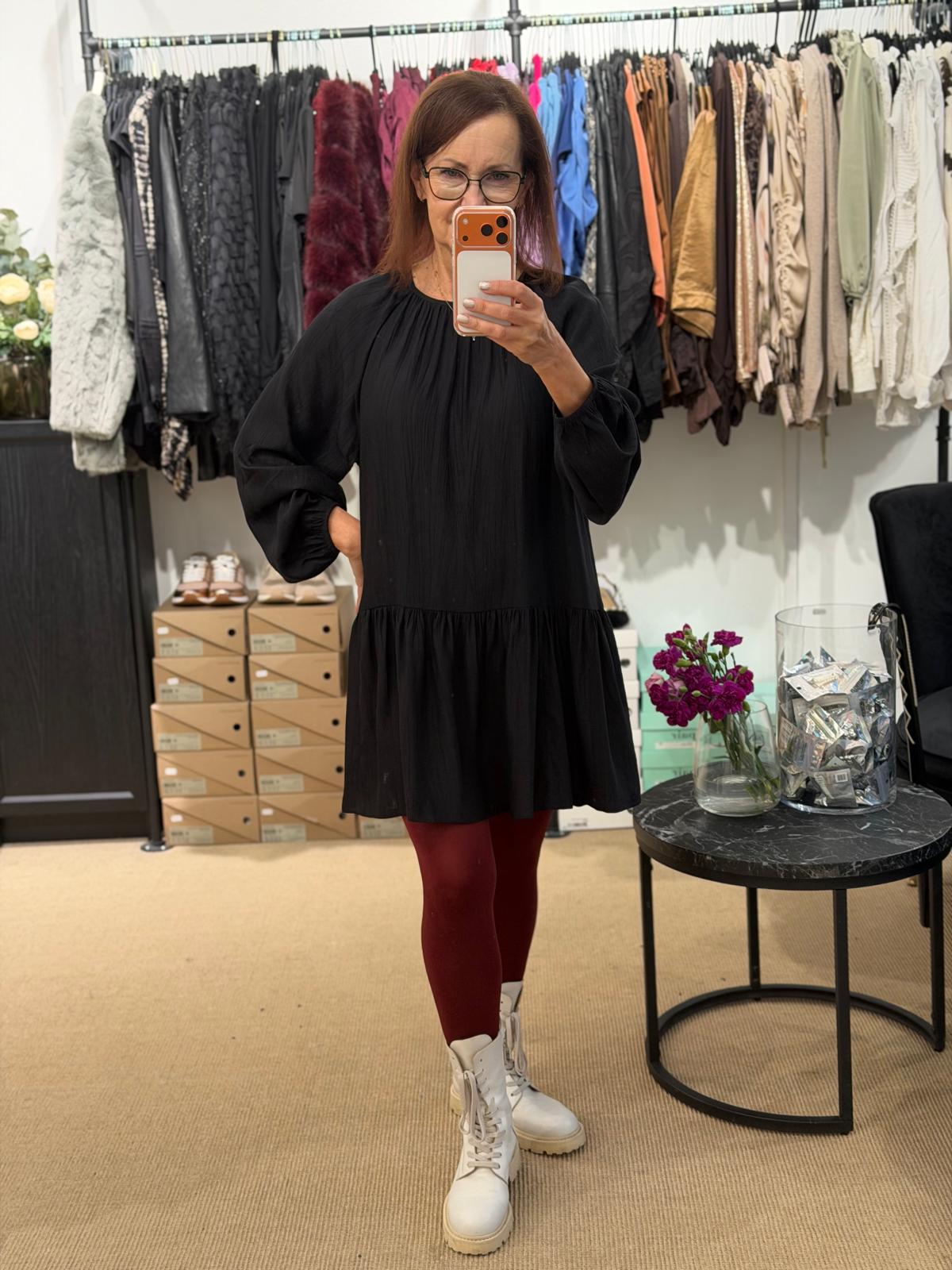 Yhdistä rentoon arkilookiin leggingsien ja maihareiden kanssa tai viimeistele juhlavampi tyyli sukkahousuilla ja koroilla. Tämä mekko taipuu moneen!