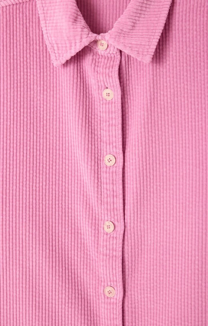 Väljä, rento samettipaita, joka tuo väriä ja pehmeyttä pukeutumiseen. Klassinen kauluspaitamalli, nappikiinnitys edessä ja täyspitkät hihat nappikalvosimilla. Pyöristetty helma ja hartioilta hieman laskeutuva leikkaus tekevät tästä paidasta helposti yhdisteltävän arkeen. Malli on 175cm pitkä ja käyttää kokoa XS/S.