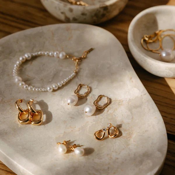 Ajattoman elegantit Go To Hoops -korvakorut yhdistävät pehmeän väännöksen ja näyttävän helmen harmoniseksi kokonaisuudeksi. Luonnollisista makeanveden helmistä valmistetut roikkuvat koristeet lisäävät arjen tyyliin ripauksen hienostuneisuutta. Aaltoileva rengasdesign tuo korvakoruihin modernia ilmettä, joka toimii täydellisesti niin arkilookin viimeistelijänä kuin juhlavammassa asukokonaisuudessa.