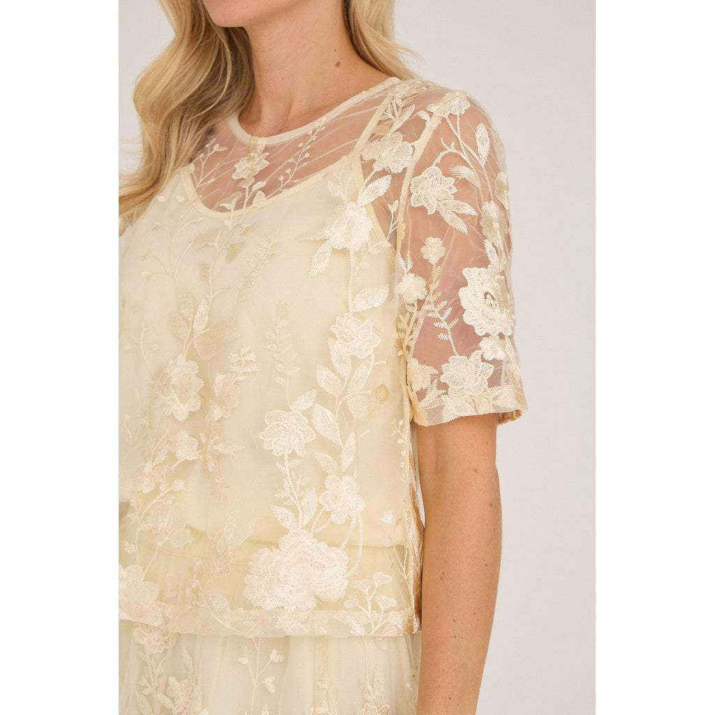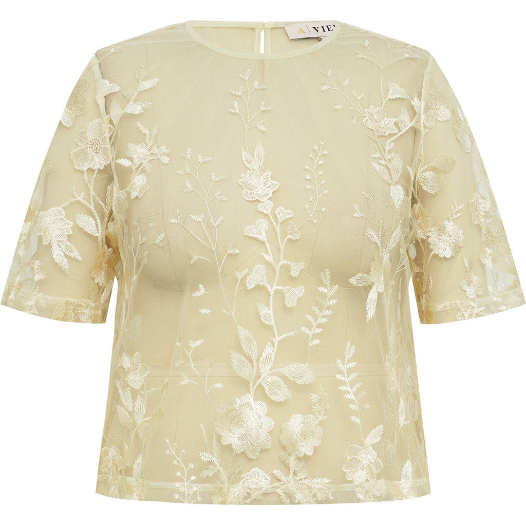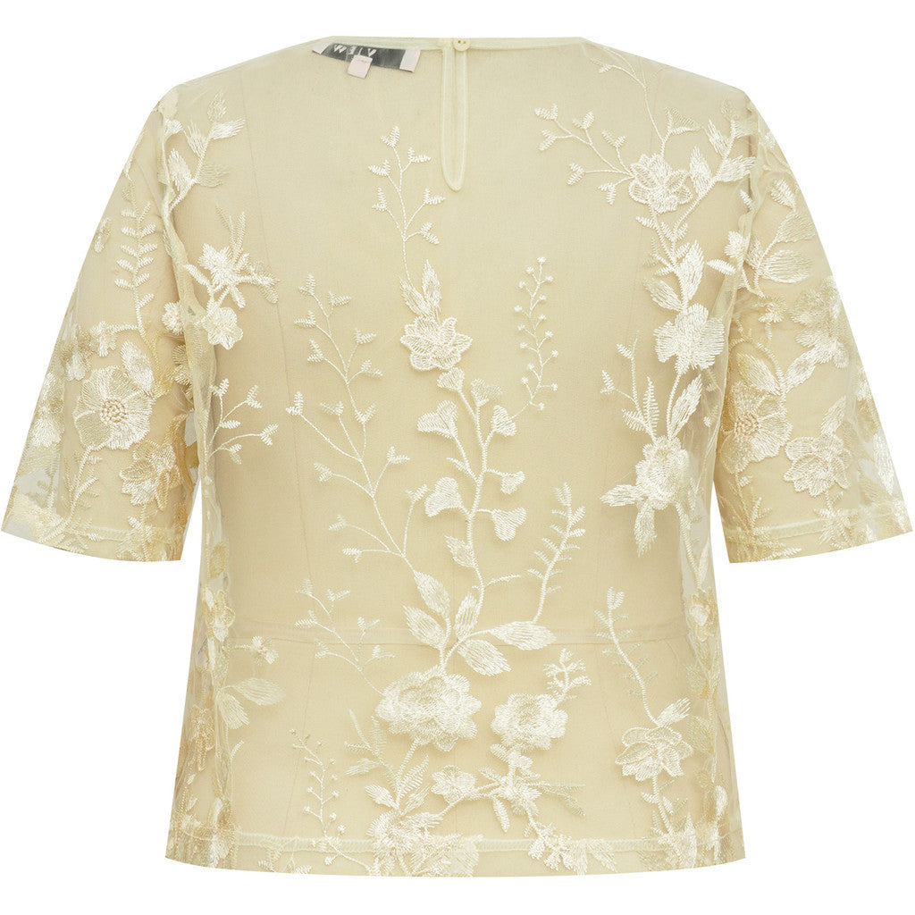 Fuchsia-pusero on elegantti ja naisellinen pusero, joka on valmistettu kevyestä läpikuultavasta mesh-kankaasta. Kauniit kirjailtut kukkakuviot tuovat puseroon romanttisen ja hienostuneen ilmeen.
