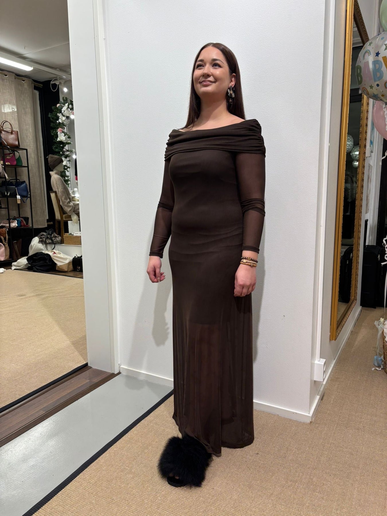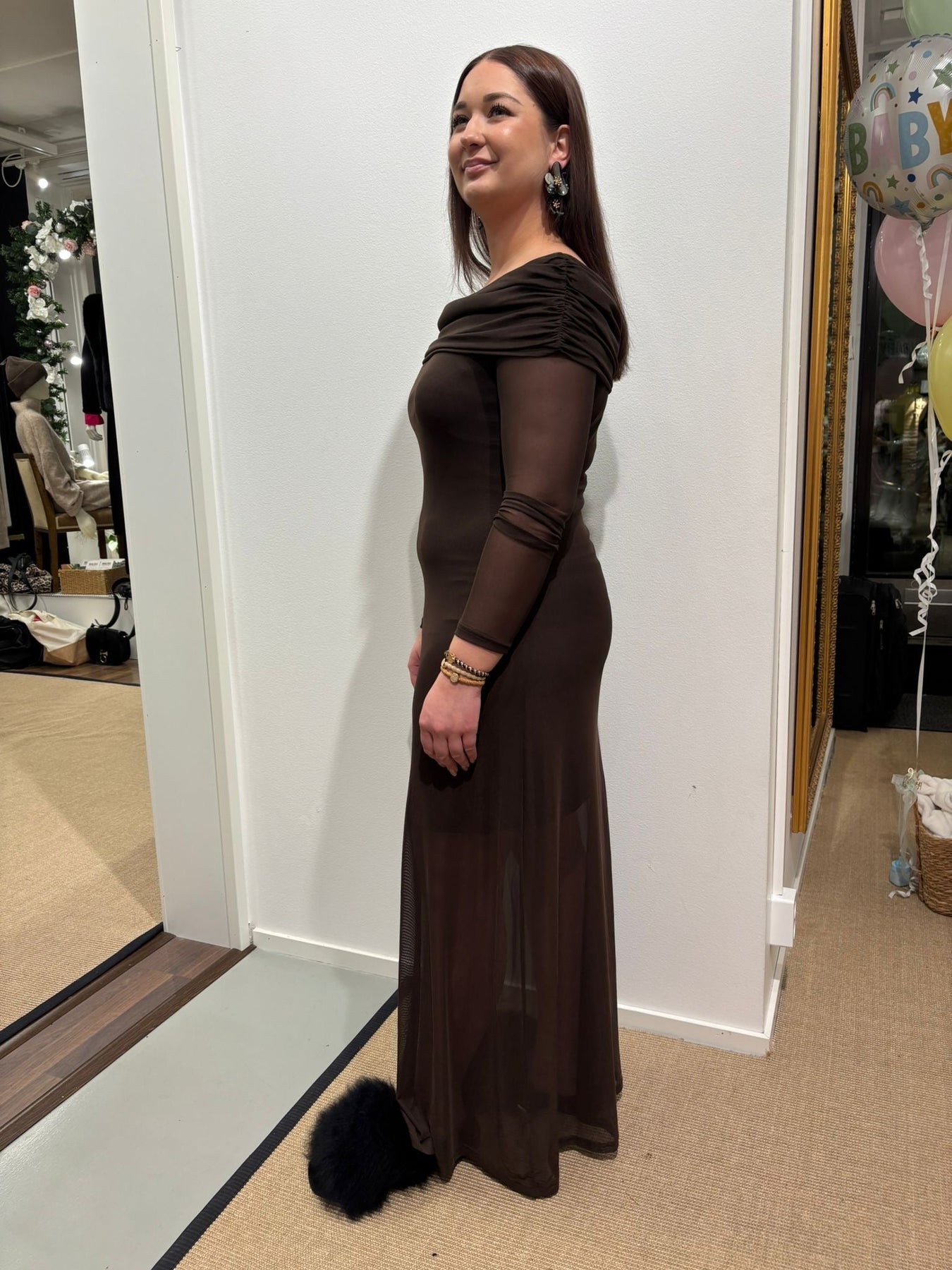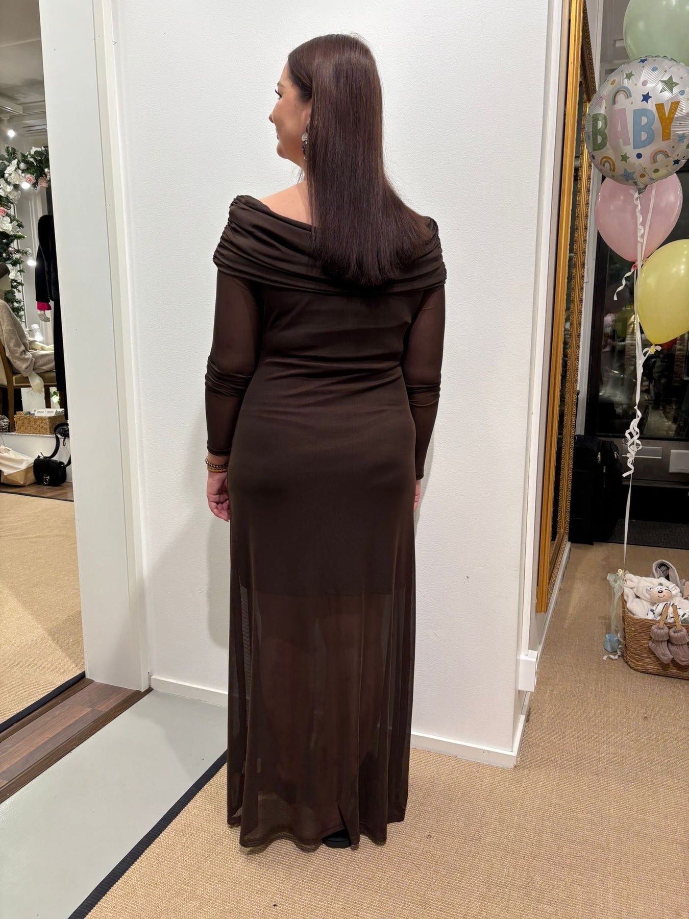Kit Dress on moderni ja elegantti valinta kaikkiin juhlahetkiin. Tämä vartaloa imarteleva midi-pituinen mekko on valmistettu kevyestä, läpikuultavasta mesh-materiaalista, joka tuo asuun hienostunutta keveyttä ja tyylikkyyttä.