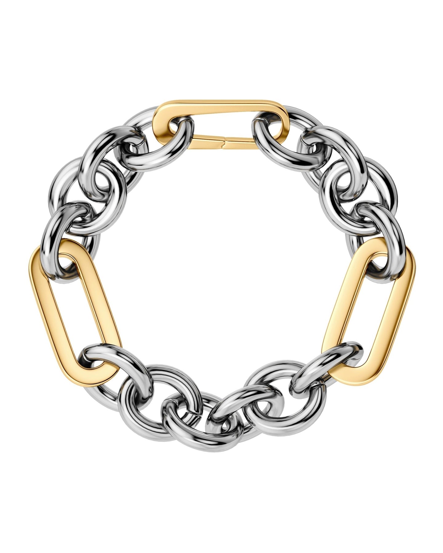Upea Medley yhdistää chunky-trendin ja ruostumattoman ja kullatun teräksen sekoituksen ja muodostaa siten sarjan, joka todella erottuu edukseen. Tässä rannekorussa isommat kullatut teräslenkit vuorottelevat pienempien kiiltävää ruostumatonta terästä olevien lenkkien kanssa. Erityisen vaikuttava yhdessä sarjan korvakorujen, kaulakorun tai sormuksen kanssa.