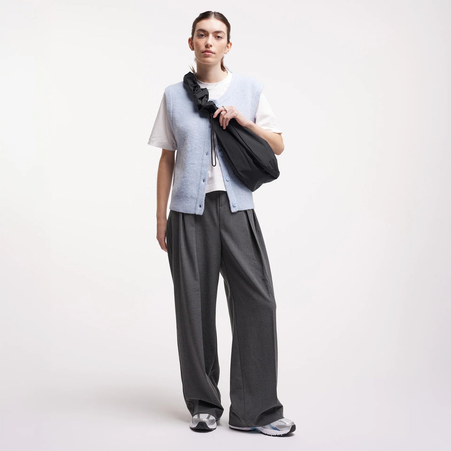 Pehmeä ja kauniisti rypytetty olkahihna tuo persoonallista ilmettä ja mahdollistaa laukun käytön sekä crossbody- että olkalaukkuna. Kevyt mutta kestävä laukku pitää sisällään vetoketjullisen sisätaskun tärkeimmille pikkutavaroille.