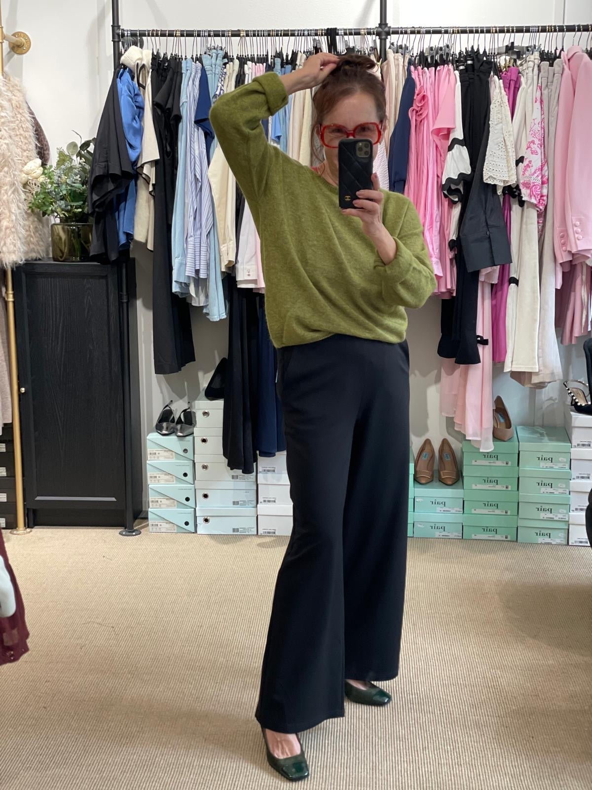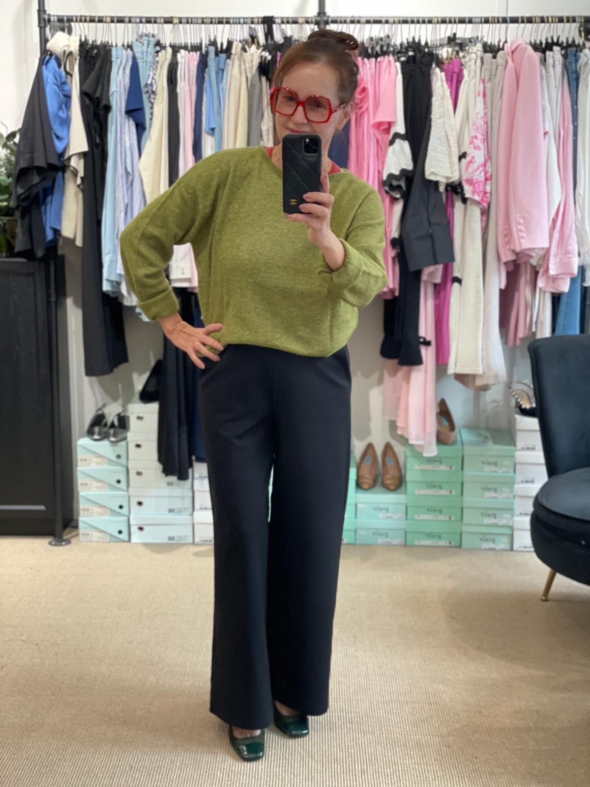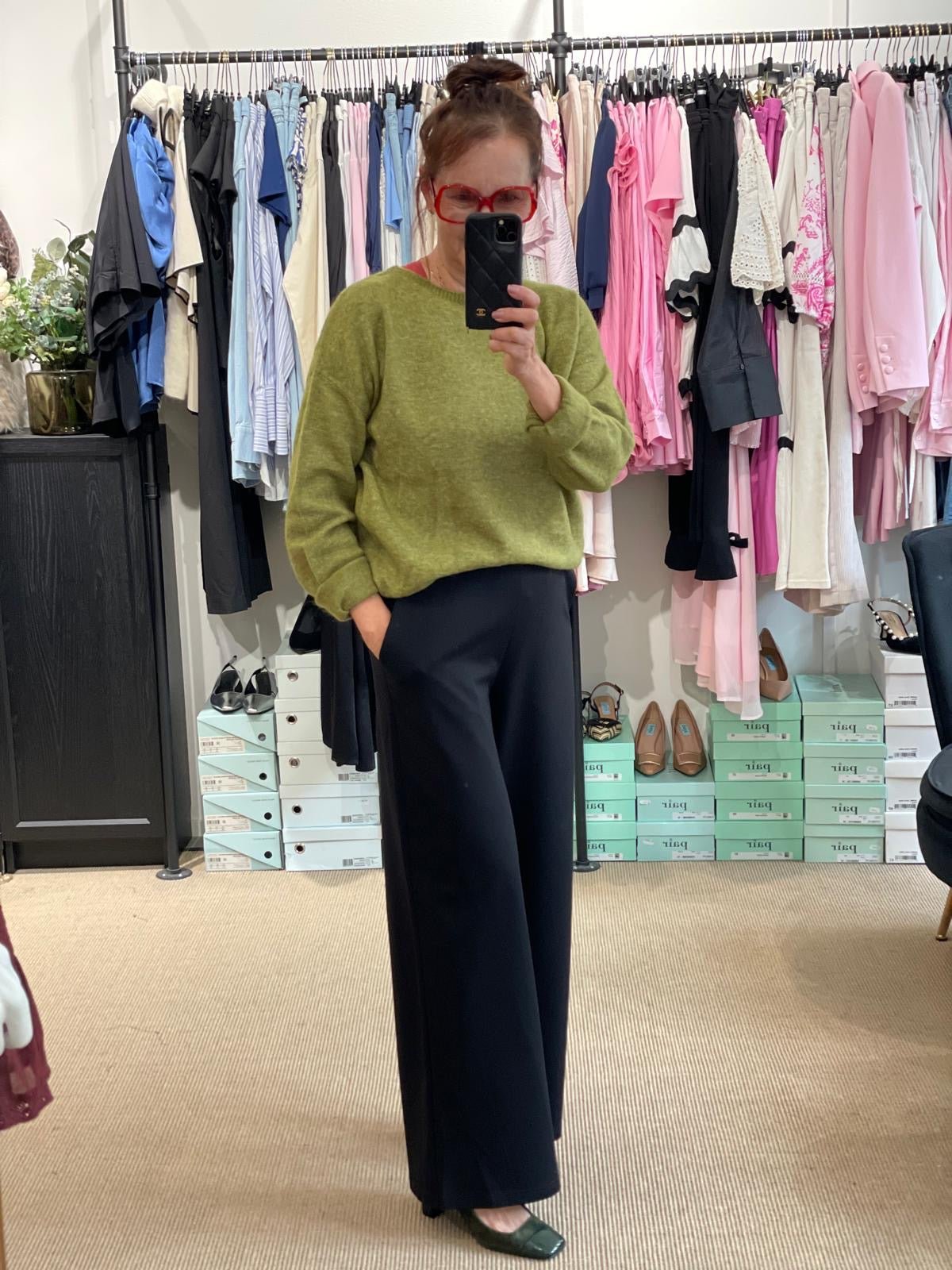 Upea kotimainen Niccolei-housu. Tämä on jo asiakkaiden suosikiksi päässyt malli, joka ei viimeksi ennättänyt edes verkkokauppaan. Nämä housut ovat tyylikäs ja mukava valinta arkeen ja töihin. Suora, leveälahkeinen malli, joka laskeutuu kauniisti ja tuo ryhdikkyyttä siluetille. Laadukas ja joustava materiaali takaa käyttömukavuuden koko päiväksi.