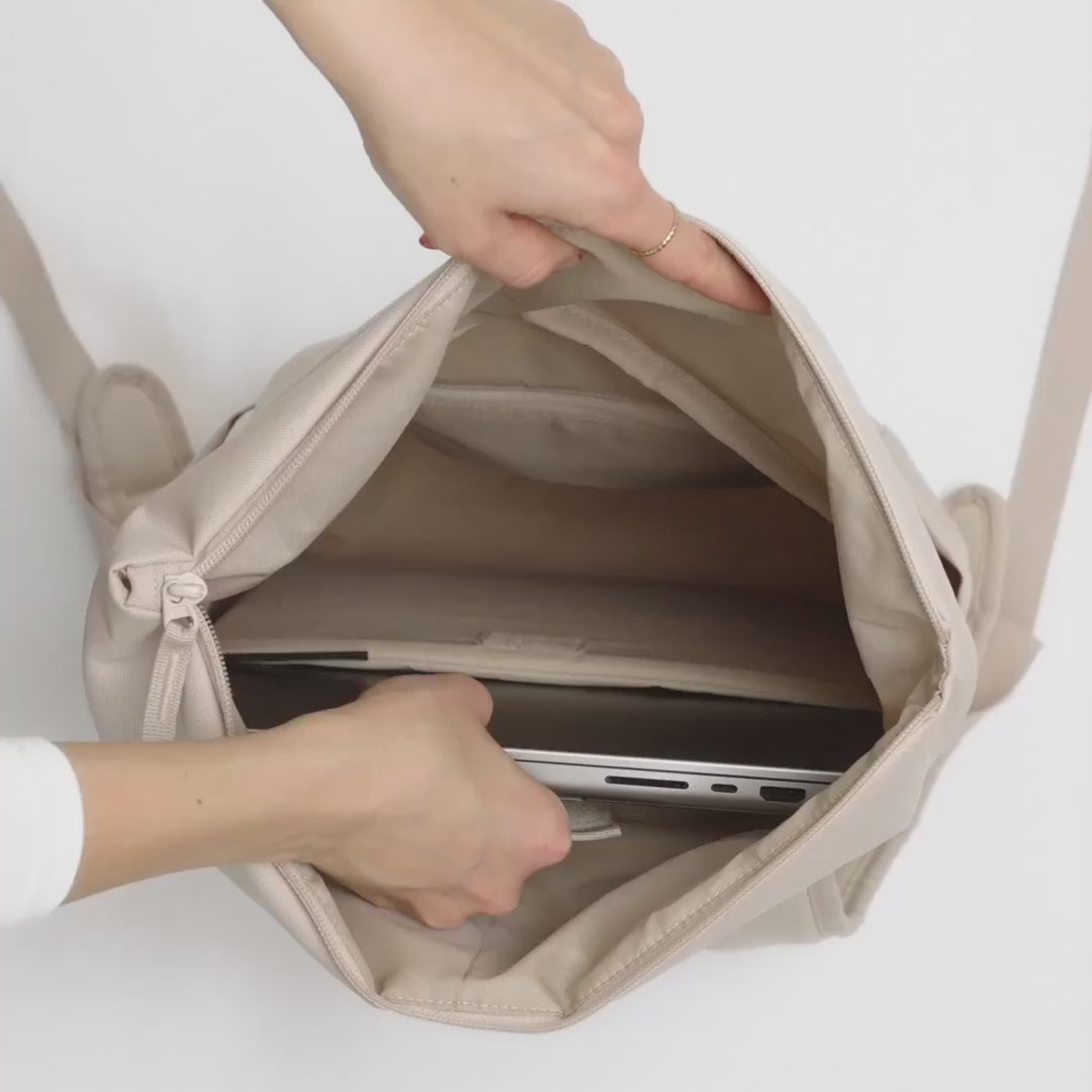- Padded laptop tasku (esim. 14" MacBookille) – koko: 35 cm x 25,5 cm x 1,5 cm