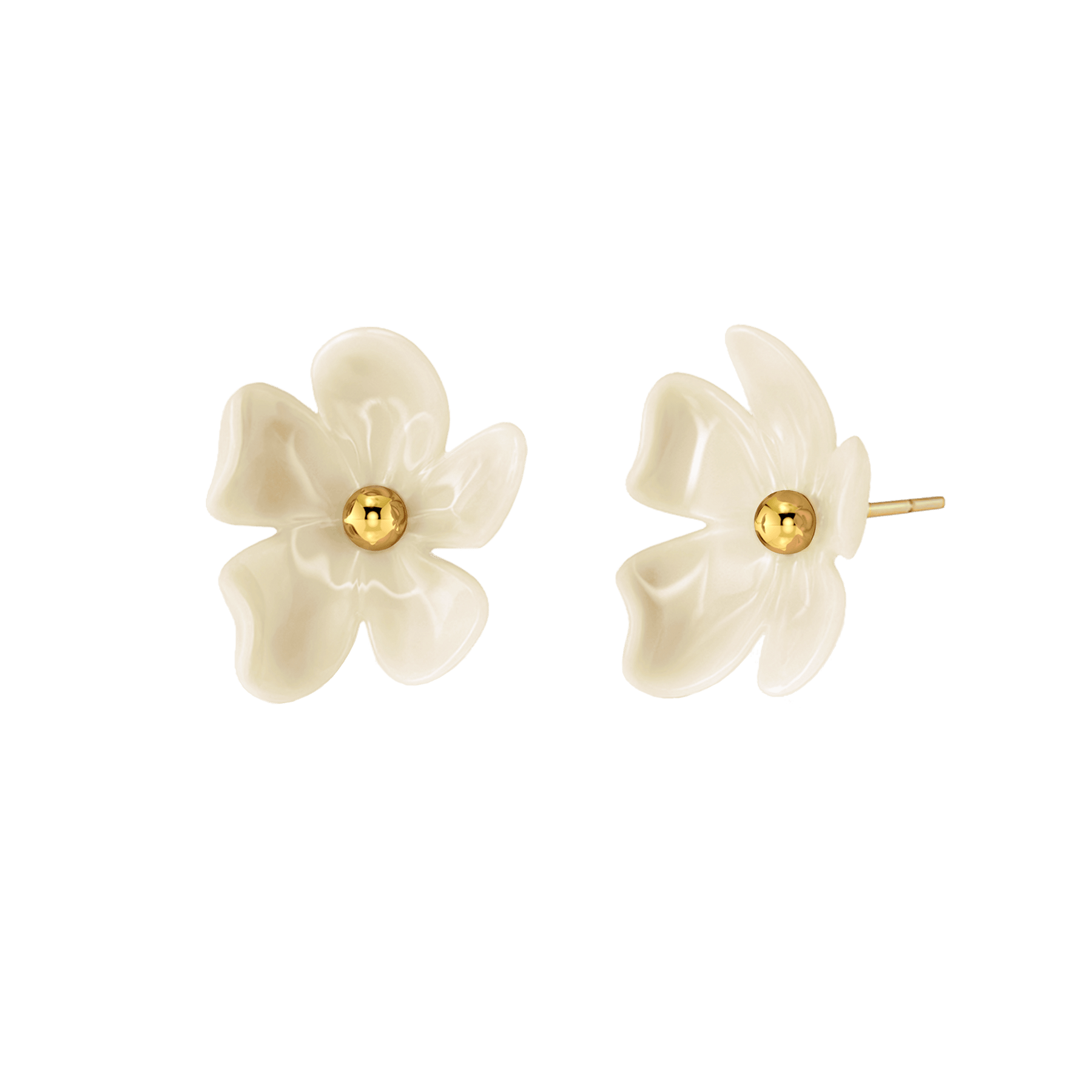 Wildflower-korvakorut tuovat tyyliin keveyttä ja leikkisää eleganssia. Höyhenenkevyet, hartsista valmistetut kukat muodostavat näyttävän mutta herkän kokonaisuuden.