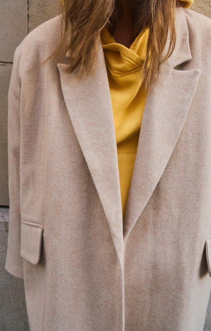 Minimalistinen, ajaton ja tyylikkään huoleton. Tämä oversized-villakangastakki tuo asuusi rentoa eleganssia ja lämpöä viileisiin päiviin. Laadukas villasekoitekangas tuntuu ylelliseltä ja pitää sinut lämpimänä, kun taas rennon väljä mitoitus tekee takista täydellisen kerrospukeutumiseen.