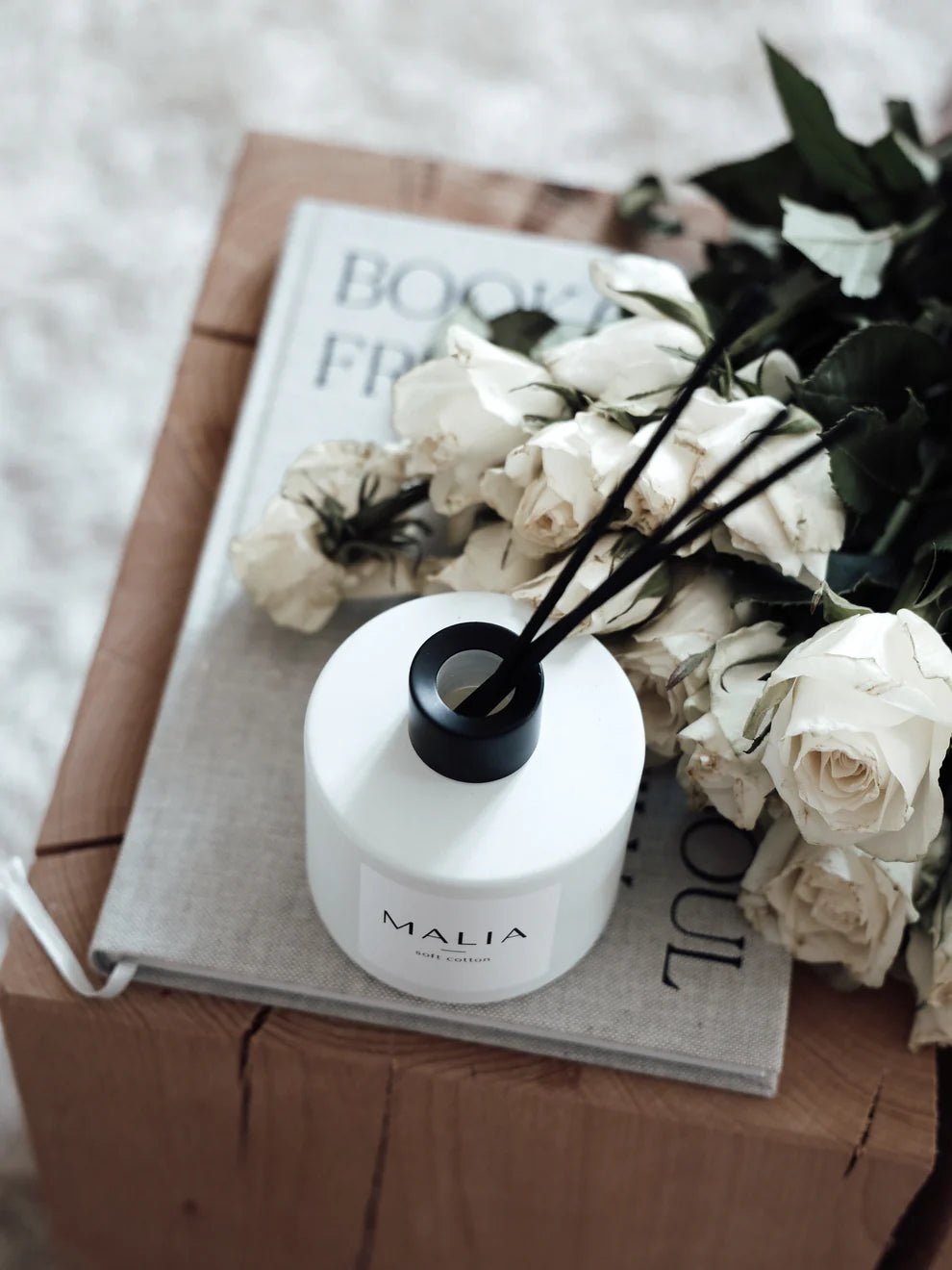 Our luxury diffusers are hand crafted in France using only natural alcohol and the best French fragrances. All our diffusers are 100 % vegan, cruelty-free, and come in a beautiful handprinted matt glass bottle. MALIA diffusers last three plus months and come with six reed bamboo sticks.
